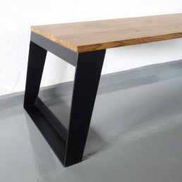 The hard angles of the laser-cut steel legs are balanced by the stunning grain and warm tones of the wood top.